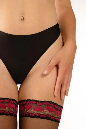 Fijne 15 denier kousen met een speelse kanten band en siliconen strips tegen het afzakken. Combineer deze kousen met je lingerie voor een speelse, romantische uitstraling en natuurlijk ook om jezelf te verwennen.