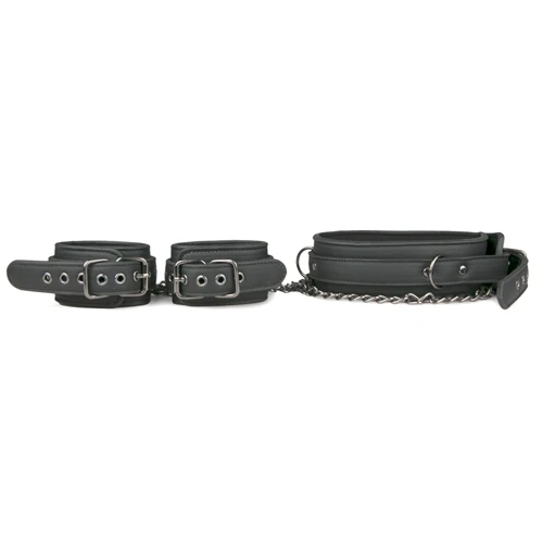 Jij hebt de controle als je sub deze fantastische bondageset draagt! Hij bestaat uit een halsband met handboeien die gemakkelijk van elkaar gescheiden kunnen worden door middel van clipsluitingen. De speeltjes zijn gemaakt van stevig kunstleer gevoerd met schuim, waardoor ze duurzaam zijn en comfortabel om te dragen. De halsband is verstelbaar van 45 tot 58 cm en de boeien zijn verstelbaar van 11 tot 28 cm. Deze set wordt geleverd met 1 ketting met een lengte van 40 cm. Combineer deze speciale set met andere speeltjes, zoals enkelboeien, ball gags, zweepjes en tepelklemmen voor een extra opwindende ervaring.