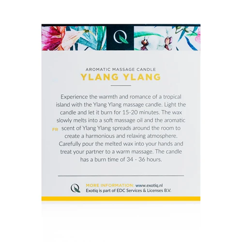 Laat je masseren of masseer je partner met deze Exotiq massagekaars. Steek de kaars aan en geniet van de heerlijke Ylang Ylang geur die zich door de kamer verspreidt.