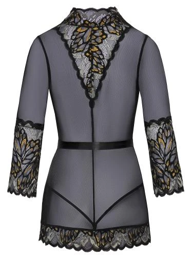 Sensuele Transparante Kimono Met Luxe Kant Zwart