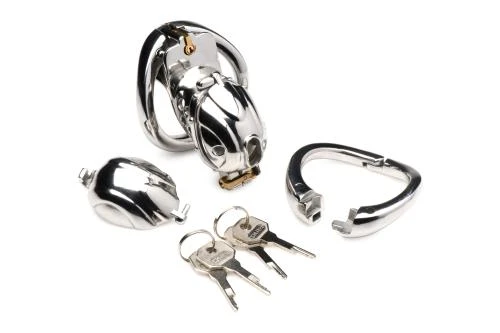 Houd je onderdanige onder controle met deze opwindende kuisheidskooi. De duurzame kooi heeft een comfortabel en veilig ontwerp, is lichtgewicht en hypoallergeen, en zorgt voor optimale ventilatie voor hygiëne. De peniskooi wordt geleverd met 2 verschillende maten ringen en 2 verschillende ventielen, zodat je de pasvorm kunt aanpassen aan jouw individuele maat. De set bevat reserve sleutels. De peniskooi voorkomt dat je jezelf aanraakt en geeft de sleutelhouder maximale controle. Het materiaal is roestbestendig en gemakkelijk schoon te maken met warm water en een speelgoedreiniger. De peniskooi kan worden gebruikt met elk type glijmiddel.
