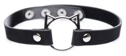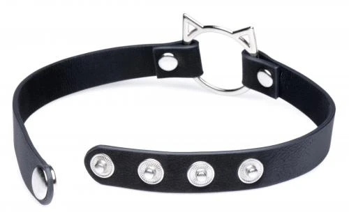 Wees een ondeugend katje met deze sexy en stijlvolle choker! Deze choker is verstelbaar en heeft een opvallende ring in de vorm van een kattenhoofd. Het metaal is nikkelvrij en het bandje is gemaakt van vegan leer. Je verstelt de band makkelijk met behulp met de drukkers aan de achterzijde zodat Kinky Kitty altijd goed passend zit.