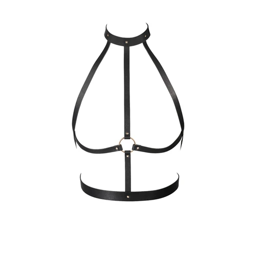 Bondage en lingerie komen samen in dit schitterende harnas van Maze, een merk van Bijoux Indiscrets. Het door BDSM geïnspireerde harnas is gemaakt van topkwaliteit kunstleer. Hierdoor profiteer je van alle looks echt leer zonder dierlijke materialen. Het harnas bestaat uit verschillende riemen en is volledig verstelbaar waardoor het perfect om elk lichaam valt. De bandjes in het midden trekken extra aandacht naar je borsten en worden verbonden door een roségouden ring. Draag het in combinatie met sexy kleding of lingerie en creëer de meest uitdagende looks.