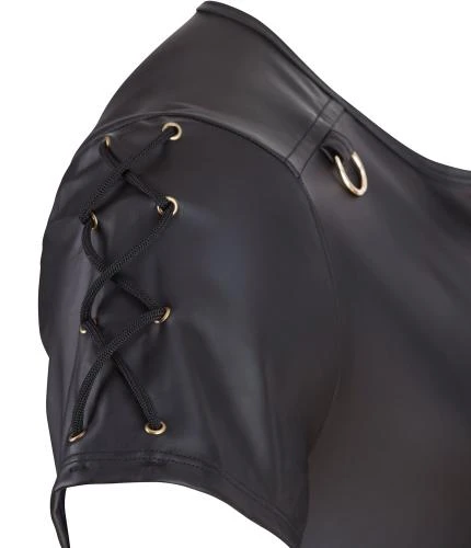 Dit uniek ontworpen zwarte shirt heeft een opvallende combinatie van texturen, een moderne matte look met decoratieve inzetstukken in de schouderpartij en een rits aan de voorzijde voor extra comfort. De stof heeft fantastische stretch voor uitstekend pasvorm.