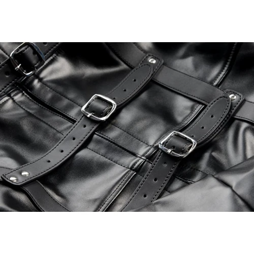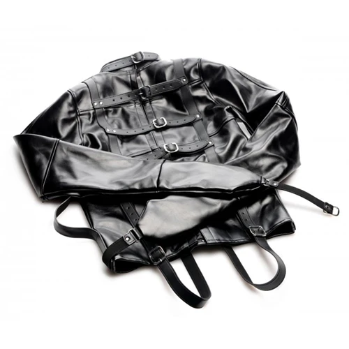 Wil jij zeker weten dat je je sub volledig onder controle kan houden? Dan is deze kunstleren dwangbuis zeker iets voor jou! Als je sub eenmaal in de dwangbuis zit, zal hij of zij geen kant meer op kunnen. De dwangbuis is gemaakt van zwart kunstleer en voelt lekker soepel aan. Hij is aan alle kanten volledig met gespen te verstellen, zodat hij altijd een perfecte pasvorm heeft. Aan de voorkant van de kraag is een metalen Oring geplaatst. Hier kan een riem, touw of een ander bondagespeeltje aan bevestigd worden.